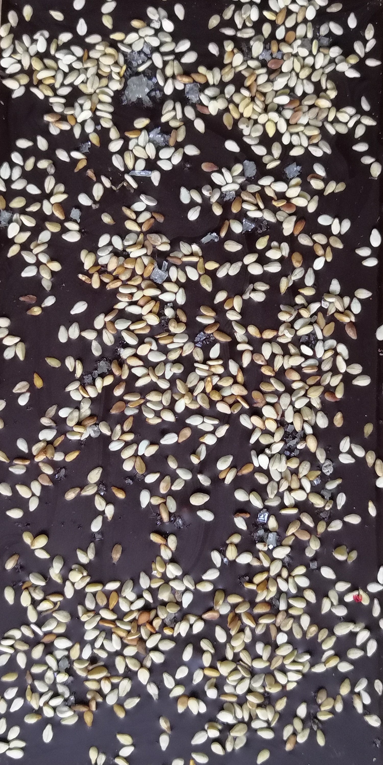 TABLETTE DE CHOCOLAT NOIR DE LA FÈVE À LA TABLETTE (BEAN TO BAR) GRAINES DE SÉSAME & PARSEMÉE DE FLEUR DE SEL.